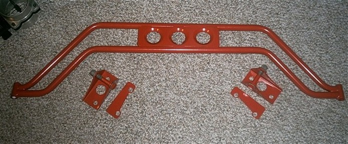 Recently re-powder coated in Red. There is no Hotchkis sticker on the bar anymore. But it looks excellent and is ready to bolt on. Comes with the brackets, spacers, nuts and bolts for easy install.