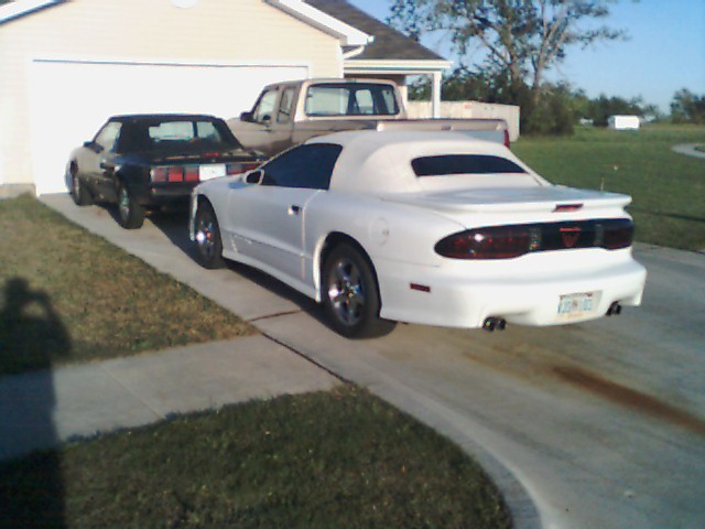 my first time posting, I spend a lot of time on a mopar board talking about my 1965 plymouth fury convertible but I always drive my 1996 trans am convertible. It is completely stock v8 with auto white exterior and top with white seats and balck and white interior. it has 145,000 miles with no major problems. So far I have replaced the top (last month) replaced the windshield (last week rock chip) water pump, brakes and (rotors twice) two trns mounts and spark plugs.