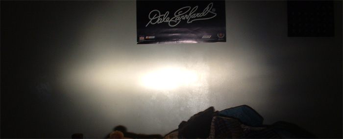 This ones of the Xenon lamps in the OEM Housing. Putting the bulb deeper in the housing will bring together those two bright spots in the middle, but cant be done unless you shave off part of the neck of the housing or bulb base (Will Probably Try this Tommorow).....