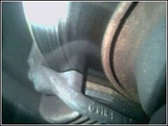 What is causing this?? It looks like the caliper is rubbing on the rotor. It has been making a scraping noise around corners only. The noise has been present every since I changed the brakes a few months ago. The back right is the only problem.